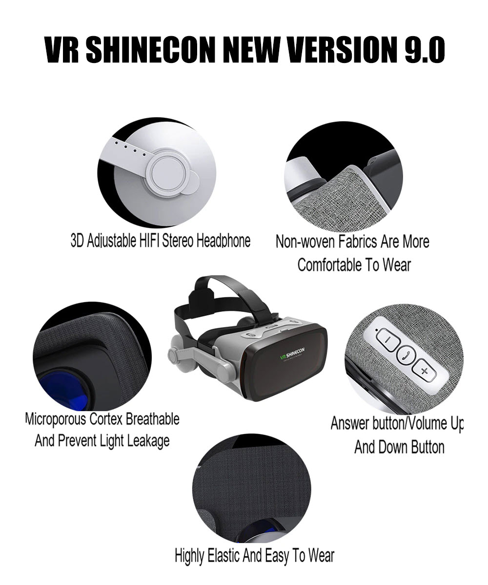 ✨Shinecon G07E - Kính Thực Tế Ảo VR Shinecon 2018 version 7 G07E - Hàng Chính Hãng - VR SHINECON G07E 9th Generation Virtual Reality 3D Video Glasses Game Virtual Reality Glasses VR Headset Helmet for Android IOS