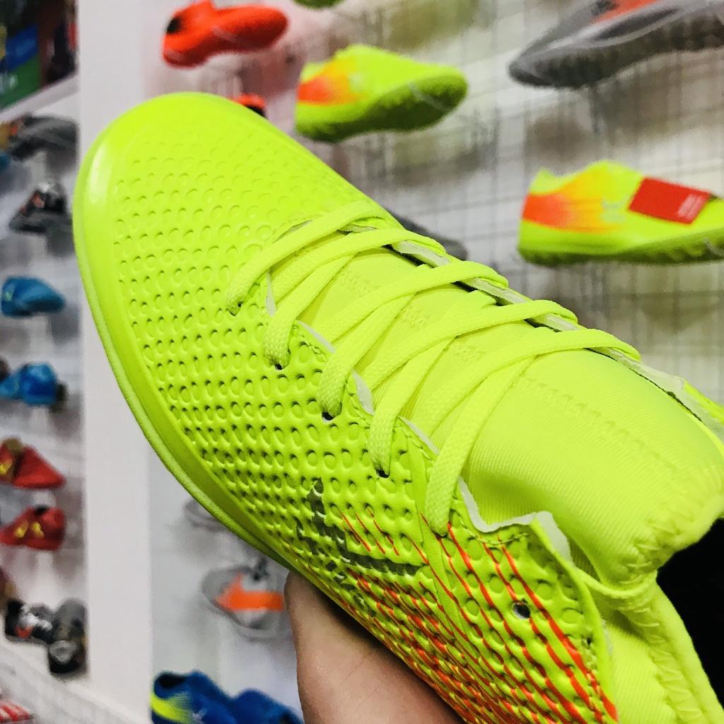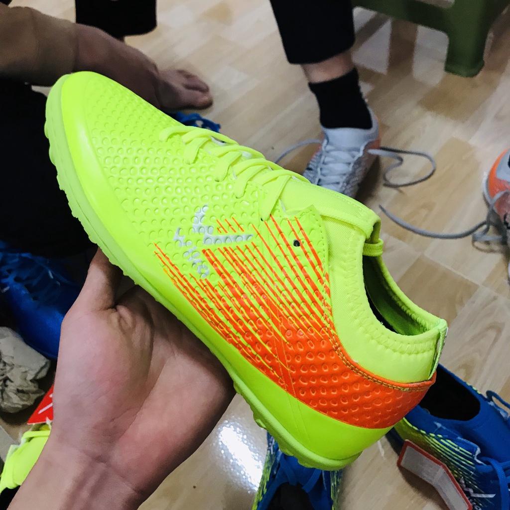 Chất liệu giày làm từ da tăng cường khả năng chống thấm, thoáng khí Phần đế giày đá bóng bằng chất liệu 100% cao su, mềm mại khi sử dụng, đế có rãnh chống trơn,