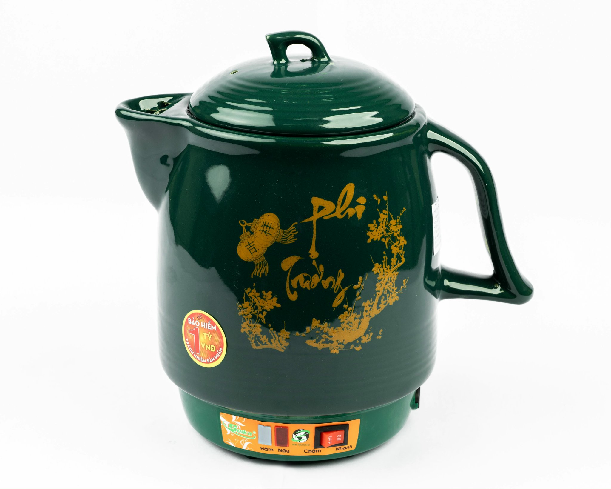 Dung tích: 2.8 L- Công suất: 450W- Thân ấm thiết kế với hoa văn ông già - củ sâm- Nguồn gốc sứ từ làng gốm Bát Tràng nổi tiếng- Chất liệu gốm được nung ở