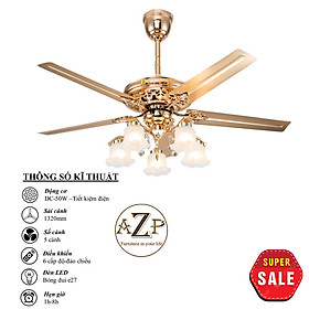 Siêu Sales QUẠT TRẦN AZP- 5 CÁNH KIM LOẠI, CÔNG XUẤT 50W, CÓ REMOTE- Hàng Nhập Khẩu Động cơ: DC - 50W - Tiết kiệm điện Sải Cánh: 1360MM Chất Liệu Cánh: kim loại Điều