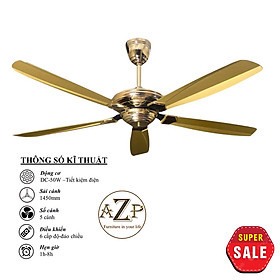 Siêu Sales QUẠT TRẦN AZP- 5 CÁNH KIM LOẠI, CÔNG XUẤT 50W, CÓ REMOTE- Hàng Nhập Khẩu Động cơ: DC - 50W - Tiết kiệm điện Sải Cánh: 1360MM Chất Liệu Cánh: kim loại Điều