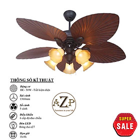 Siêu Sales QUẠT TRẦN AZP- 5 CÁNH GỖ, CÔNG XUẤT 50W, CÓ REMOTE- Hàng Nhập Khẩu Động cơ: DC - 50W - Tiết kiệm điện Sải Cánh: 1360MM Chất Liệu Cánh: gỗ thật Điều khiển: