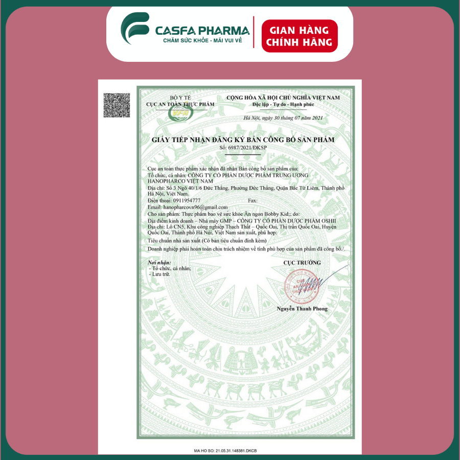 Siro ăn ngon cho bé BOBBY KID TW Hanopharco,hỗ trợ tăng đề kháng (20 gói*10ml) ️ THÀNH PHẦN: Trong 10ml có chứa: