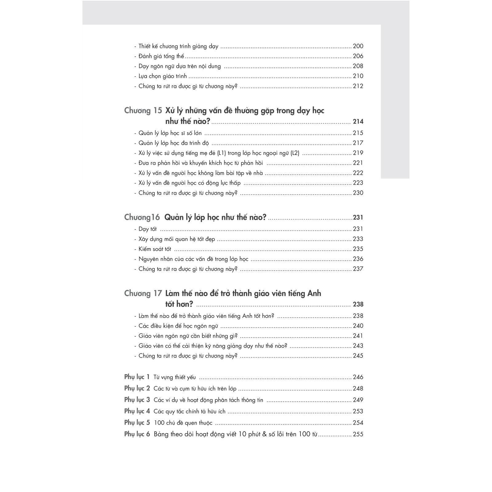 Cuốn sách cung cấp những kiến thức cốt lõi và kỹ thuật giảng dạy thiết yếu mà mỗi giáo viên EFL cần biết, là những nội dung bao quát nhiều khía cạnh quan trọng của việc giảng dạy như: