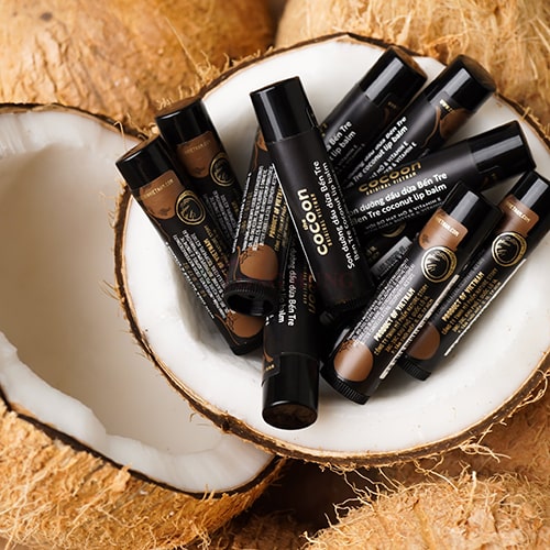 Công dụng • Son dưỡng có mùi thơm tự nhiên từ dầu dừa Bến Tre giúp dưỡng ẩm, bảo vệ và chống khô môi do thời tiết. Nhờ vào kết cấu mỏng nhẹ và không quá