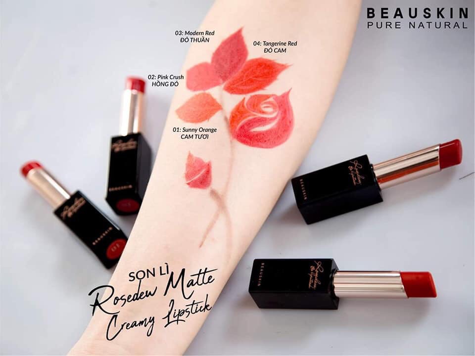 ✨Son lì nhẹ môi Beauskin Rosedew Matte Creamy Hàn Quốc No.01 Cam tươi tặng kèm móc khóa