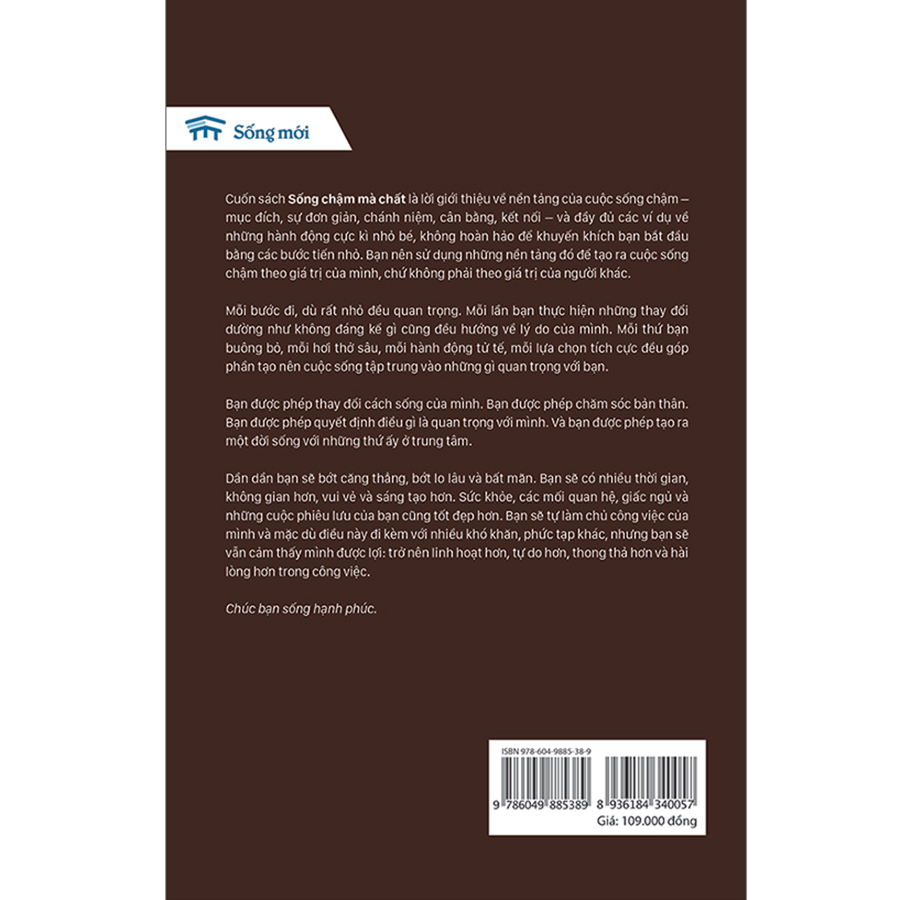 Mua tại TiktokTận hưởng cuộc sống qua từng khoảnh khắc. Cuốn sách này sẽ không đưa đến cho bạn những khái niệm mới. Nó viết về những khái niệm đã trở nên quen thuộc trong suốt thời gian qua tại Việt Nam: sống chậm, sống tối giản, chánh niệm… Nó sẽ là góc nhìn và sự tổng hợp đến từ tác giả Brooke McAlary – người xếp hạng 1 trên bảng iTune Health Postcast của Apple năm 2016 với Postcast The Slow Home được hơn 1 triệu lượt tải về trên khắp thế giới. Sống chậm mà chất sẽ mang đến cho độc giả góc nhìn rộng hơn về những khái niệm đã quen thuộc tại Việt Nam: