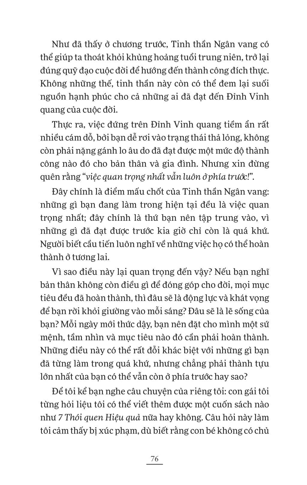 Sống Đời Ngân Vang - Việc Quan Trọng Nhất Vẫn Luôn Ở Phía Trước Quyển sách Live Life in Crescendo được viết bởi Stephen R. Covey và Cynthia Covey, là một tác phẩm mang thông điệp mạnh mẽ về việc sống một cuộc sống đầy ý nghĩa và phát triển không ngừng. Đây là một cuốn sách khuyến khích người đọc tạo ra một ảnh hưởng tích cực trong cuộc sống, thông qua việc sống theo các giá trị bền vững, phát triển cá nhân và đóng góp cho cộng đồng. Cuốn sách gợi nhắc rằng mỗi chúng ta đều có câu chuyện riêng, đều phải trãi qua những nỗi đau và những biến cố trong đời, nhưng ai cũng có sức mạnh nội tại để đứng dậy và bước tiếp. Chúng ta không chỉ vượt qua những điều tưởng chừng như không thể, mà còn tiếp tục sống để tìm lại niềm hạnh phúc trong đời. Dù bạn đang có được thành công hay đối mặt với nghịch cảnh, cảm thấy trì trệ, bế tắc... có thể quãng thời gian tuyệt vời nhất vẫn đang chờ đợi bạn ở phía trước. Cuốn sách này là một lời kêu gọi sống trọn vẹn, tạo ra một cuộc sống đầy ý nghĩa và đóng góp vào sự thay đổi tích cực trong thế giới xung quanh chúng ta. Nó có thể là một nguồn động lực cho những ai đang tìm kiếm một phương hướng sống với mục tiêu và sức ảnh hưởng mạnh mẽ.