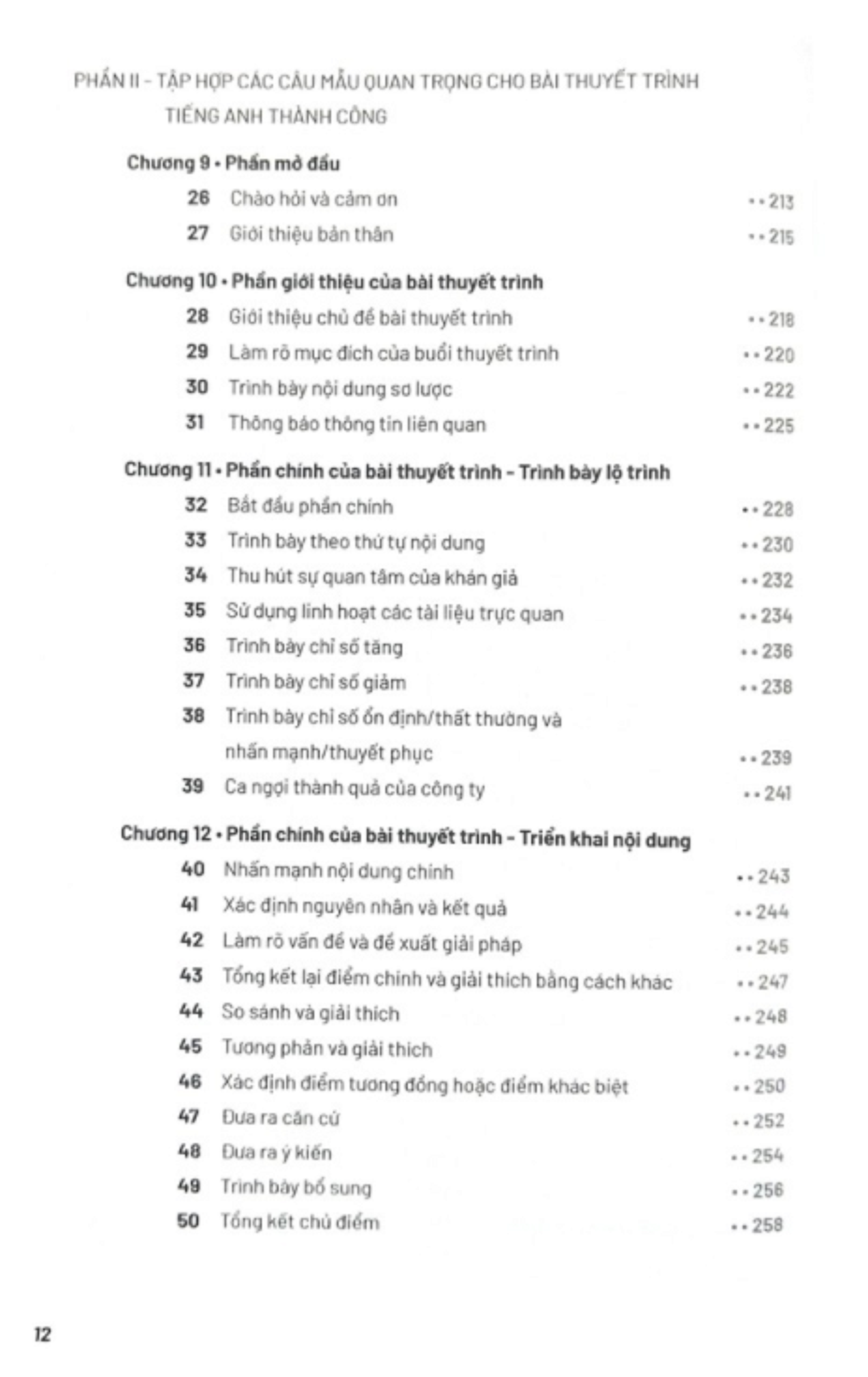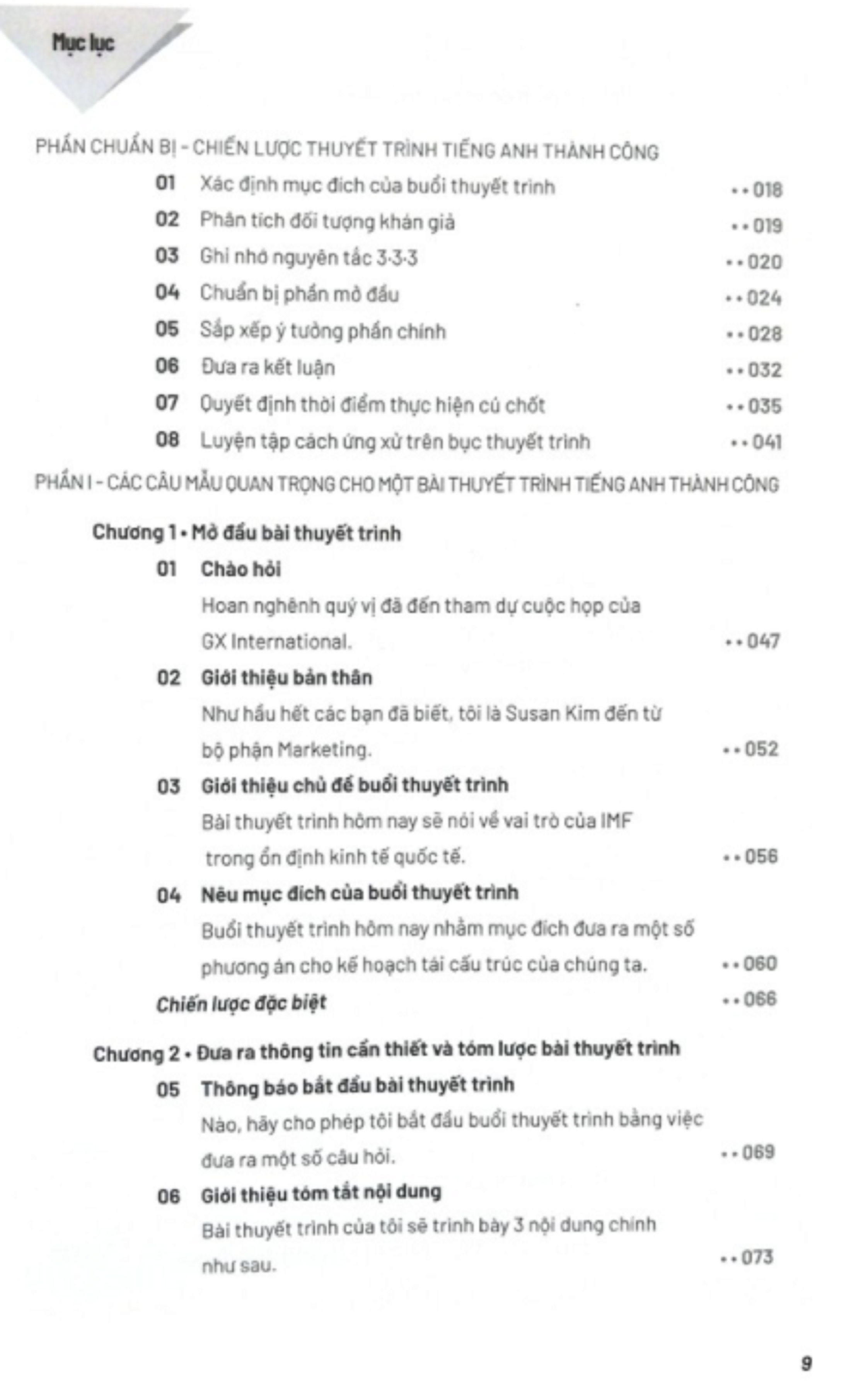 - Cung cấp các câu mẫu bằng tiếng Anh theo từng bước, có thể áp dụng trong nhiều bối cảnh thuyết trình khác nhau;