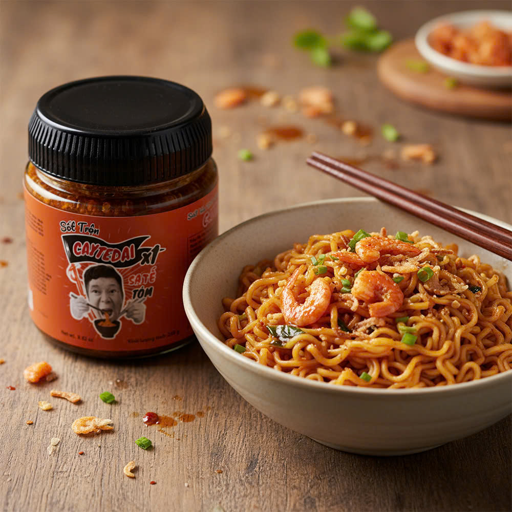 Sốt Trộn Sa Tế Tôm CayTeDai X1- Chuẩn Vị Đậm Đà Trộn Gì Cũng Ngon Lâm Vlog Food giới thiệu Sốt Trộn Sa Tế Tôm CayTeDai X1 – cay ngon chuẩn vị, ăn liền món