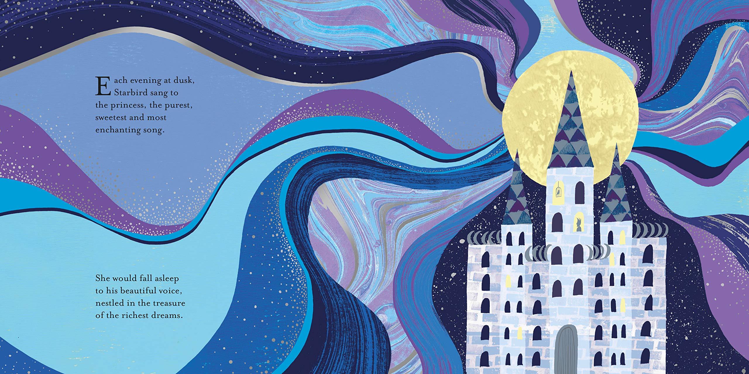 Starbird's songs weave the richest dreams and delight all who hear him, but when the Moon King traps him in a cage as gift for his daughter, the colour and life in his voice begin to drip away. While the Moon King is blinded by greed and selfishness, his young daughter can clearly see the injustice and cruelty of his actions.