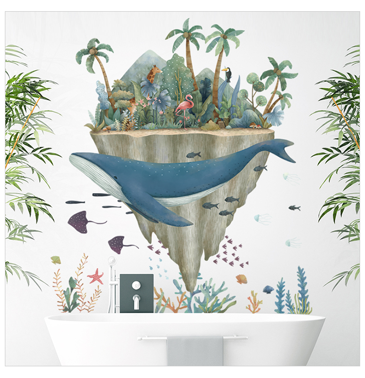 ✨Sticker Giấy Dán Tường Decal Dán tường Tranh Dán Tường Trang Trí Tường Mẫu Cá Voi Xanh Và Bán Đảo Sở Thú ZH-1018