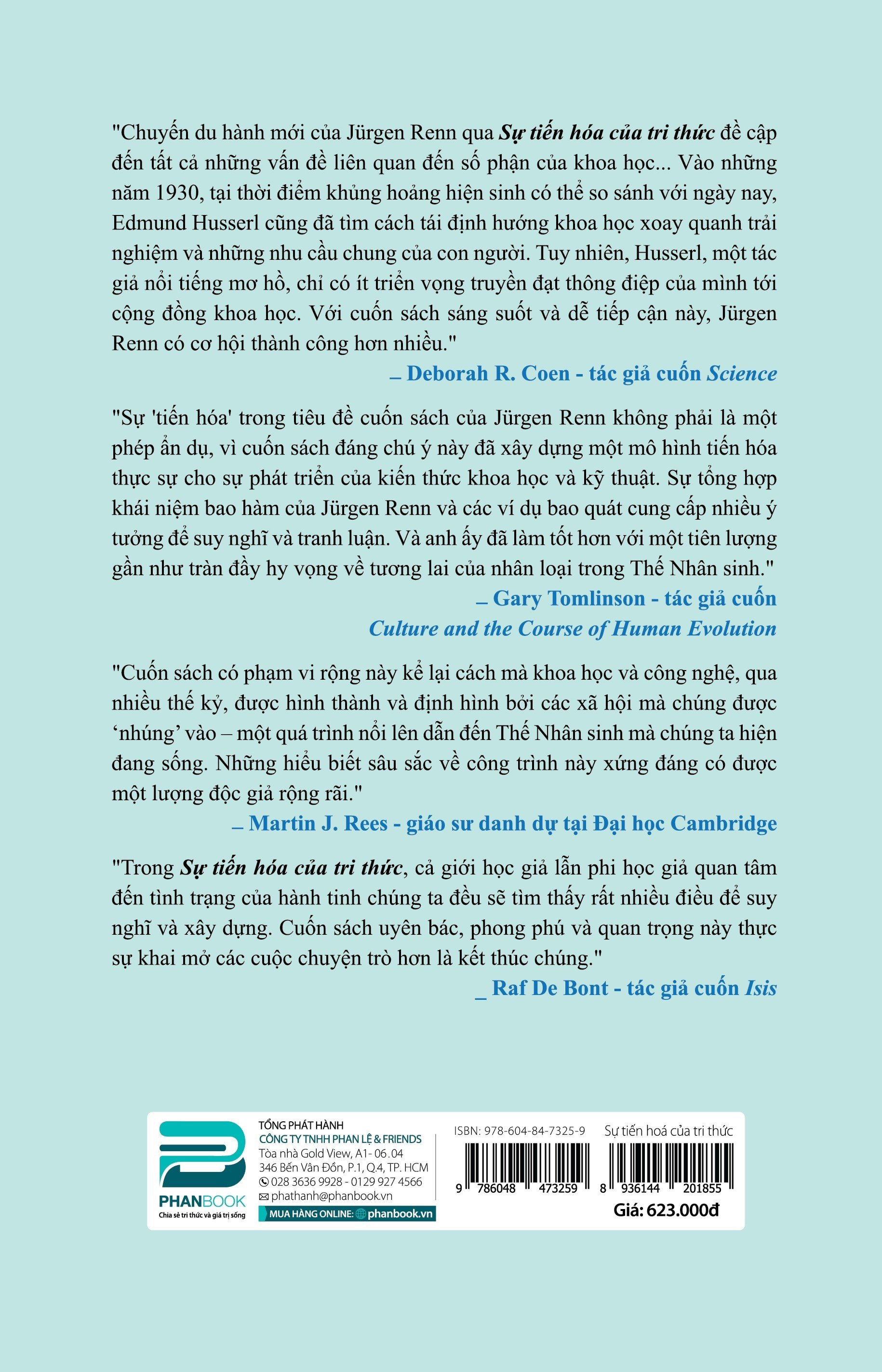 "Chuyến du hành mới của Jürgen Renn qua Sự tiến hóa của tri thức đề cập đến tất cả những vấn đề liên quan đến số phận của khoa họ Vào những năm 1930, tại thời điểm khủng hoảng hiện sinh có thể so sánh với ngày nay, Edmund Husserl cũng đã tìm cách tái định hướng khoa học xoay quanh trải nghiệm và những nhu cầu chung của con người. Tuy nhiên, Husserl, một tác giả nổi tiếng mơ hồ, chỉ có ít triển vọng truyền đạt thông điệp của mình tới cộng đồng khoa học. Với cuốn sách sáng suốt và dễ tiếp cận này, Jürgen Renn có cơ hội thành công hơn nhiều."