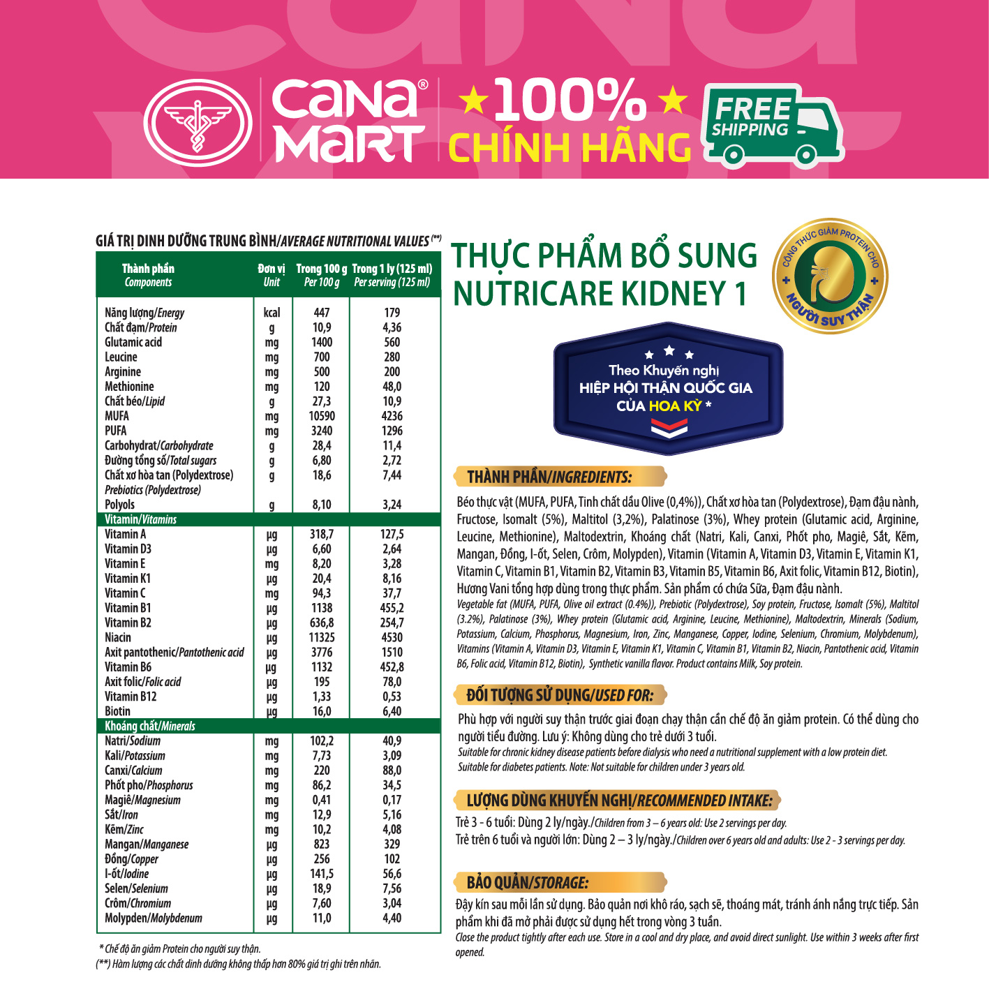 NEPRO - Sản phẩm dinh dưỡng dành cho người bệnh thận, được chứng minh đạt hiệu quả lâm sàng - Nepro là sản phẩm dinh dưỡng uy tín đã có mặt trên thị trường 15 năm và được các bệnh viện lớn như Bạch Mai, Chợ Rẫy,…được đưa vào bữa ăn dinh dưỡng dành cho người bệnh thận. - Đặc biệt, sản phẩm Nepro 2 được tư vấn công thức dinh dưỡng bởi Viện Dinh Dưỡng Quốc Gia và được phối hợp với Bệnh viện Chợ Rẫy, TP.Hồ Chí Minh thực hiện chứng minh đạt hiệu quả lâm sàng trong việc hỗ trợ điều trị đối với bệnh nhân thận - Cung cấp dinh dưỡng cao giúp người bệnh tăng cường và ổn định sức khỏe sau quá trình lọc máu. - Nhiều đạm giúp bù đắp thiếu hụt Protein hiệu quả sau quá trình lọc máu - Nhiều đạm giúp bù đắp thiếu hụt Protein hiệu quả sau quá trình lọc máu - Giúp tiêu hóa tốt và tăng cường sức khỏe tim mạch Nepro 2 cung cấp chế độ ăn có tỉ lệ Protein cao, ít Natri, Kali, Photpho, giúp bồi bổ và phục hồi sức khỏe. Nepro 2 bổ sung các Vitamin và Khoáng chất thiết yếu cho nhu cầu hằng ngày của cơ thể, giúp hấp thu và tiêu hóa tốt hơn. Nepro 2 được chứng nhận lâm sàng. Hiệu quả cho bệnh thận có lọc máu - nghiên cứu thực hiện tại Khoa dinh dưỡng & Khoa thận nhân tạo - Bệnh viện Chợ Rẫy TpHcm Đối tượng sử dụng: Người bệnh thận lọc máu ngoài thận (chạy thận) HSD: 24 tháng