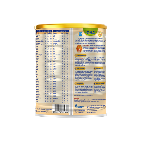 - Hỗ trợ tiêu hóa: Hệ xơ kép HMO – FOS/Inulin giúp ổn định hệ vi sinh đường ruột, cân bằng tiêu hóa, phòng ngừa táo bón. Lysine, Vitamin nhóm B giúp bé ăn ngon miệng và hấp thu tốt hơn. Độ tuổi khuyến nghị: 1 - 2 tuổi HSD: 24 tháng