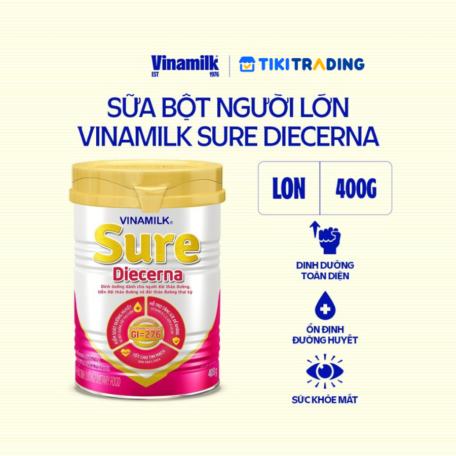 Vinamilk Sure Diecerna được nghiên cứu và kiểm nghiệm lâm sàng bới VIện Dinh Dưỡng quốc gia có chỉ số đường huyết thấp GI = 27,6, giúp kiểm soát đường huyết, tốt cho hệ tim mạch, tăng sức đề kháng, giảm tình trạng mệt mỏi của người bệnh và cung cấp 29 vitamin và khoảng chất thiết yếu.