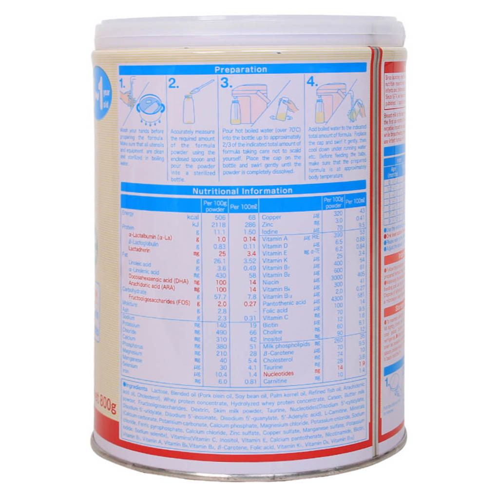 Sữa mẹ là tốt nhất cho sự phát triển của trẻ và trẻ nhỏ, tuy nhiên trong những trường hợp mẹ bị thiếu sữa thì bé sẽ cần cung cấp nguồn sữa bên ngoài để đảm bảo cho bé sự phát triển tốt nhất. Infant Formula 800g dưới đây dành cho bé từ 0-1 tuổi được sản xuất dưới sự quản lý vệ sinh và chất lượng chặt chẽ tại nhà máy đã được cấp chứng nhận ISO9001, sử dụng các thiết bị hoàn toàn tự động để sản xuất sữa và đóng hộp sẽ là lựa chọn an tâm cho mẹ. Các thành phần dinh dưỡng trong sữa không chỉ cung cấp nguồn dinh dưỡng một cách tự nhiên cho bé mà còn hỗ trợ bé phát triển trí não, tăng cường sức đề kháng trong giai đoạn non nớt đầu đời.