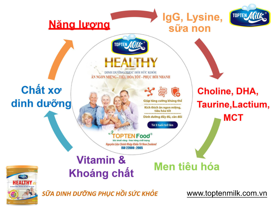-Sữa HelThy, dành cho người mới ốm đậy, người ốm yếu, kén ăn, người bệnh ung thư chán ăn, vì có hàm lượng sữa non cao nên có thể dùng thay bữa phụ, đủ hàm lượng dinh dưỡng cho những người mệt mỏi sau ốm đậy người gầy, uống đều sẽ dễ ngủ, ngủ ngon, và có hàm lượng chất béo, tăng cân, kích thích ăn ngon miệng.