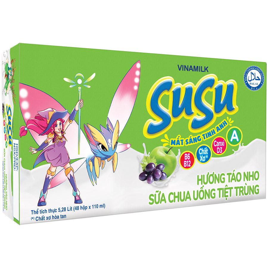 ✨Sữa chua uống hương táo nho Vinamilk Susu - Thùng 48 hộp 110ml.