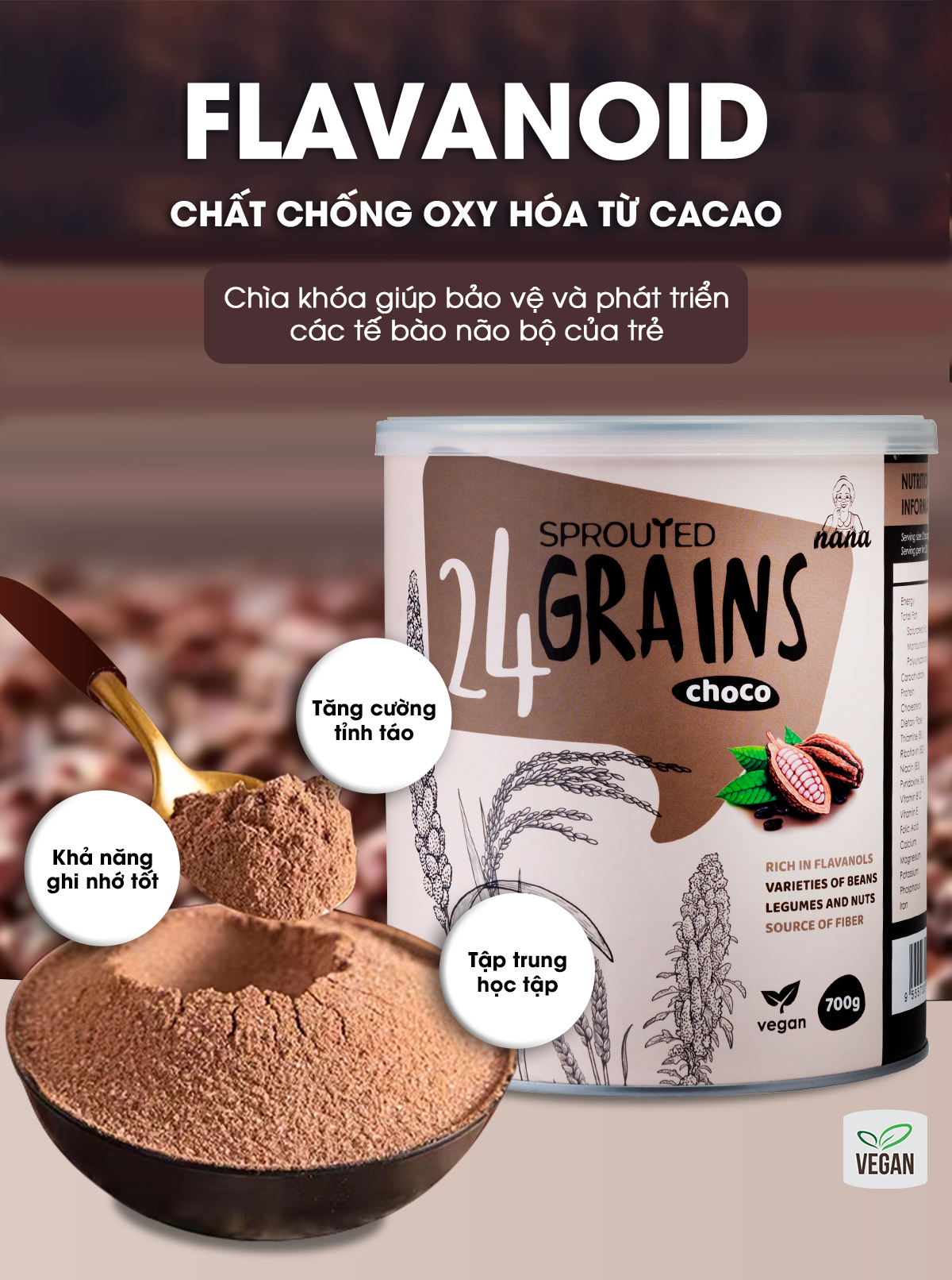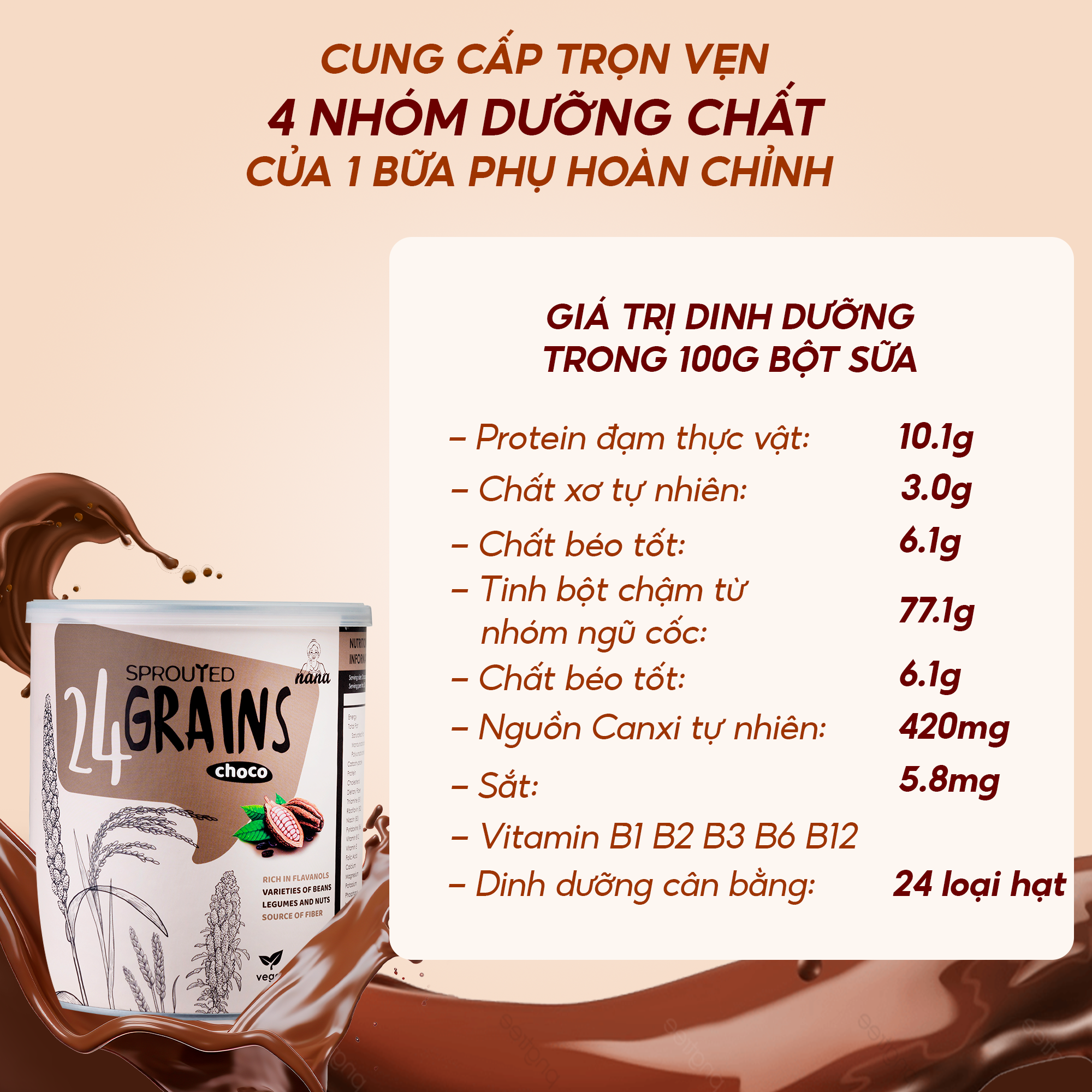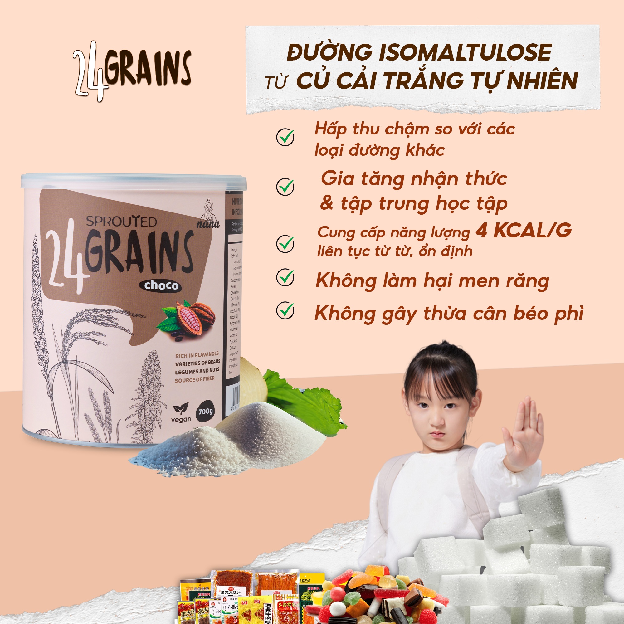 ✨Sữa Hạt 24Grains 700g x4 Hộp (2.8kg) Vị Socola Tự Nhiên Cho Trẻ Từ 3 Tuổi & Người Lớn Bổ Sung Dinh Dưỡng Toàn Diện
