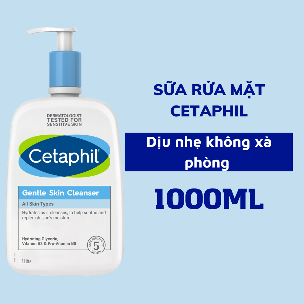 Sữa rửa mặt Cetaphil làm sạch dịu lành cho da nhạy cảm không xà phòng Cetaphil Gentle Skin Cleanser 1000ml