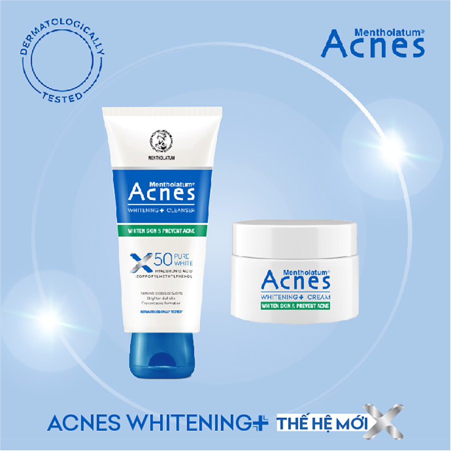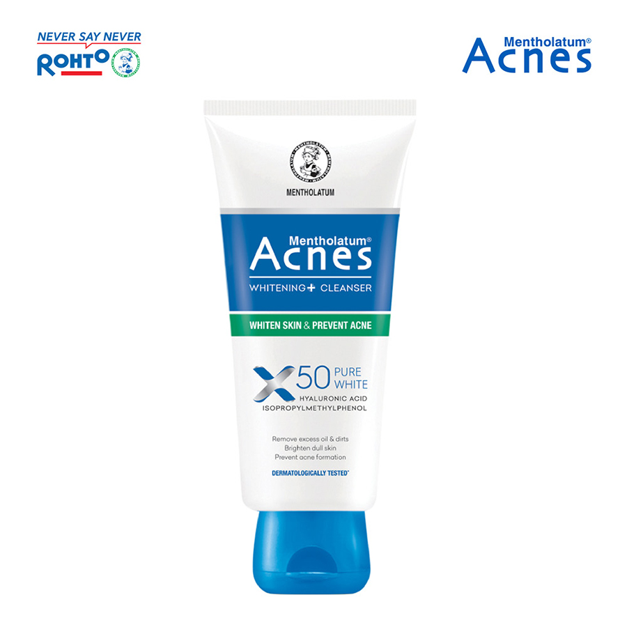 Sữa rửa mặt dưỡng trắng và ngăn ngừa mụn Acnes Pure White Cleanser 100g Acnes Whitening+ Cleanser – Sữa rửa mặt dưỡng trắng, kiểm soát nhờn, ngừa mụn thế hệ mới với cơ chế dưỡng trắng thông minh, sử dụng công nghệ Melta-Detectiv Drone chủ động đưa Peptide X50 Pure White di chuyển đến đúng vị trí hình thành melanin nhờ tín hiệu đặc biệt, từ đó giúp giảm sự hình thành melanin, dưỡng trắng và làm đều màu da. Sữa rửa mặt dưỡng trắng bổ sung Hyaluronic Acid giúp cung cấp độ ẩm khi rửa mặt và Isopropylmethylphenol giúp kháng khuẩn, ngăn ngừa mụn.