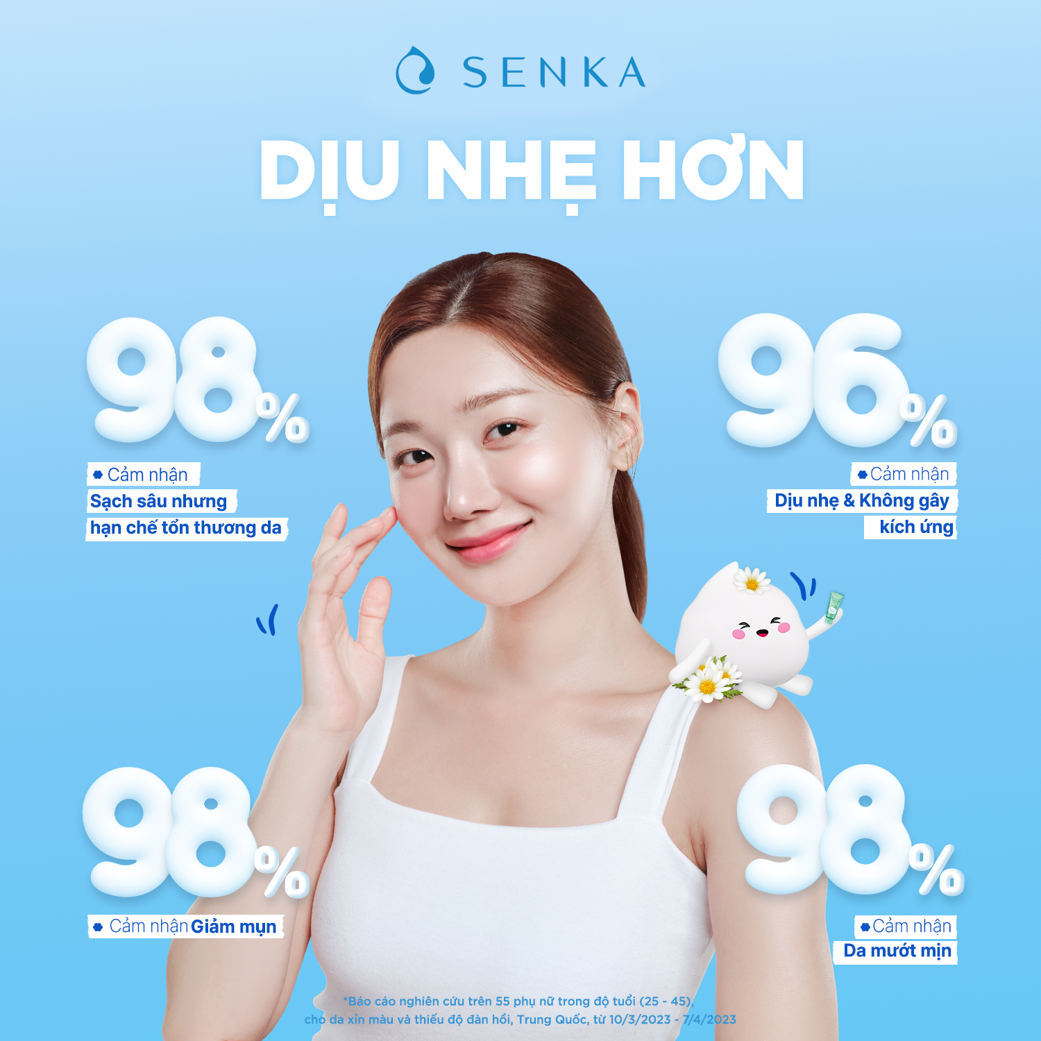 - Mát-xa da mặt với bọt theo chuyển động tròn. Rửa lại thật sạch với nước. Thông tin thương hiệu sữa rửa mặt Senka Ra đời năm 2002 tại Nhật Bản, nhãn hiệu Senka thừa hưởng lịch sử 140 năm của Tập đoàn Shiseido để mang đến những sản phẩm dưỡng da hiệu quả và an toàn với làn da phụ nữ châu Á. Với sản phẩm đại diện Senka Perfect Whip đứng đầu thị trường sữa rửa mặt Nhật Bản trong 7 năm liền (từ 2008 đến 2015), Senka mong muốn chăm sóc những người phụ nữ bận rộn một cách hiệu quả và tinh tế nhất. Câu hỏi thường gặp Sữa rửa mặt Perfect Whip màu xanh dùng cho da gì? Sữa rửa mặt Senka Perfect Whip màu xanh dương: Phù hợp với da thường, giúp làm sạch sâu và giữ ẩm nhẹ nhàng. Sữa rửa mặt Senka Perfect Acne Care màu xanh lá: Thích hợp cho da dầu và da mụn, hỗ trợ làm sạch lỗ chân lông và giảm vi khuẩn gây mụn. Sữa rửa mặt Senka xanh lá cây độ pH bao nhiêu? Độ pH của sữa rửa mặt Senka Perfect Whip Fresh Anti Shine (màu xanh lá cây) thường nằm trong khoảng từ 6.0 đến 7.0, gần với độ pH tự nhiên của da. Sữa rửa mặt Perfect Whip màu xanh dùng cho da mụn được không? Sữa rửa mặt Perfect Whip màu xanh lá có thể hỗ trợ da mụn do khả năng kiểm soát dầu, ngăn ngừa mụn. Sữa rửa mặt Senka trắng có gì khác biệt so với Senka xanh? Sữa rửa mặt Senka trắng (Perfect Whip) là phiên bản gốc, tập trung vào làm sạch và dưỡng ẩm cơ bản, phù hợp với mọi loại da. Senka xanh (Perfect Whip Fresh Anti Shine) được cải tiến để kiểm soát dầu và phù hợp hơn cho da dầu, da hỗn hợp. Sữa rửa mặt Perfect Whip màu hồng dùng cho da gì? Sữa rửa mặt Perfect Whip màu hồng (Perfect Whip Collagen In) được bổ sung collagen, thích hợp cho da cần tăng cường độ đàn hồi, chống lão hóa và dưỡng ẩm chuyên sâu. Sữa rửa mặt Senka xanh có gây khô da không? Với công nghệ dưỡng ẩm độc quyền "Aqua in Pool" và chiết xuất từ kén tơ tằm trắng cùng Hyaluronic Acid, Senka xanh làm sạch hiệu quả nhưng vẫn giữ được độ ẩm tự nhiên cho da, không gây khô căng. Một số nội dung tìm kiếm liên quan: Sữa rửa mặt Perfect Whip màu hồng Sữa rửa mặt Senka trắng Sữa rửa mặt Senka Perfect Whip Sữa rửa mặt Senka xanh lá Sữa rửa mặt Senka xanh dương