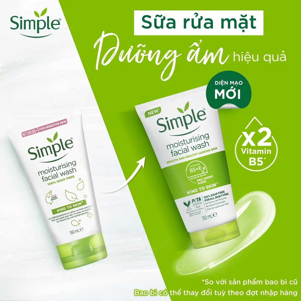 ✨Sữa Rửa Mặt Simple Moisturising Facial Wash Dành Cho Da Khô và Da Nhạy Cảm 150ml