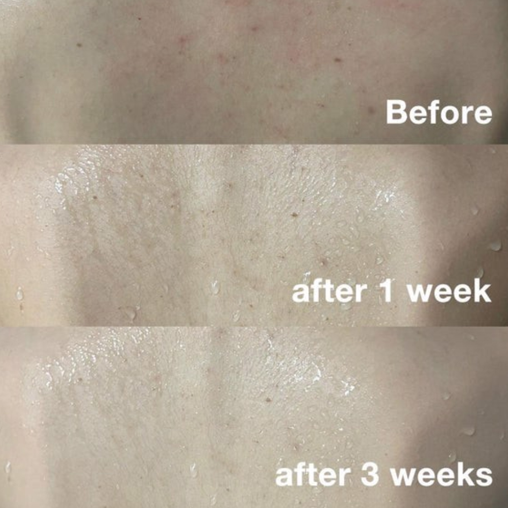 - Thoa đều lên cơ thể, nhắm vào những vùng có mụn như lưng và ngực