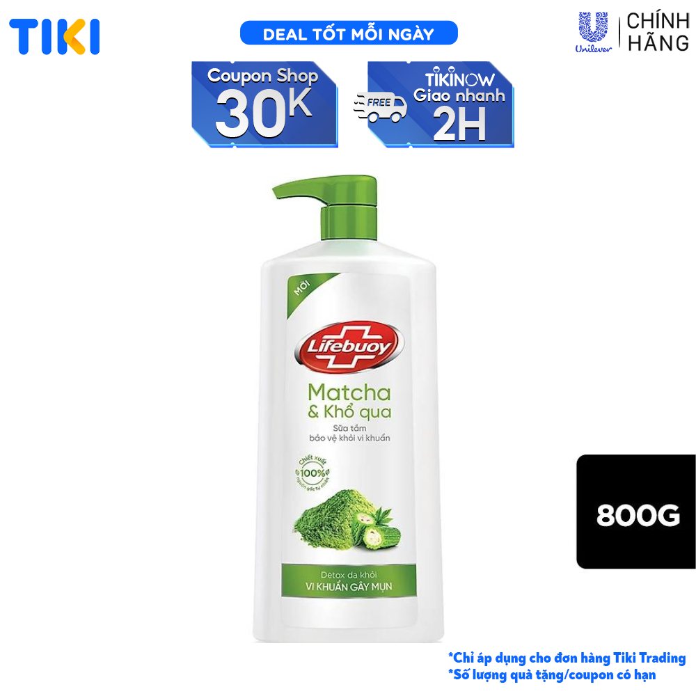 ✨Sữa Tắm Lifebuoy 800gr Detox Và Sạch Sâu Khỏi Bụi Mịn Pm2.5 Detox 100% Từ Thiên Nhiên Diệt Khuẩn - Matcha & Khổ Qua