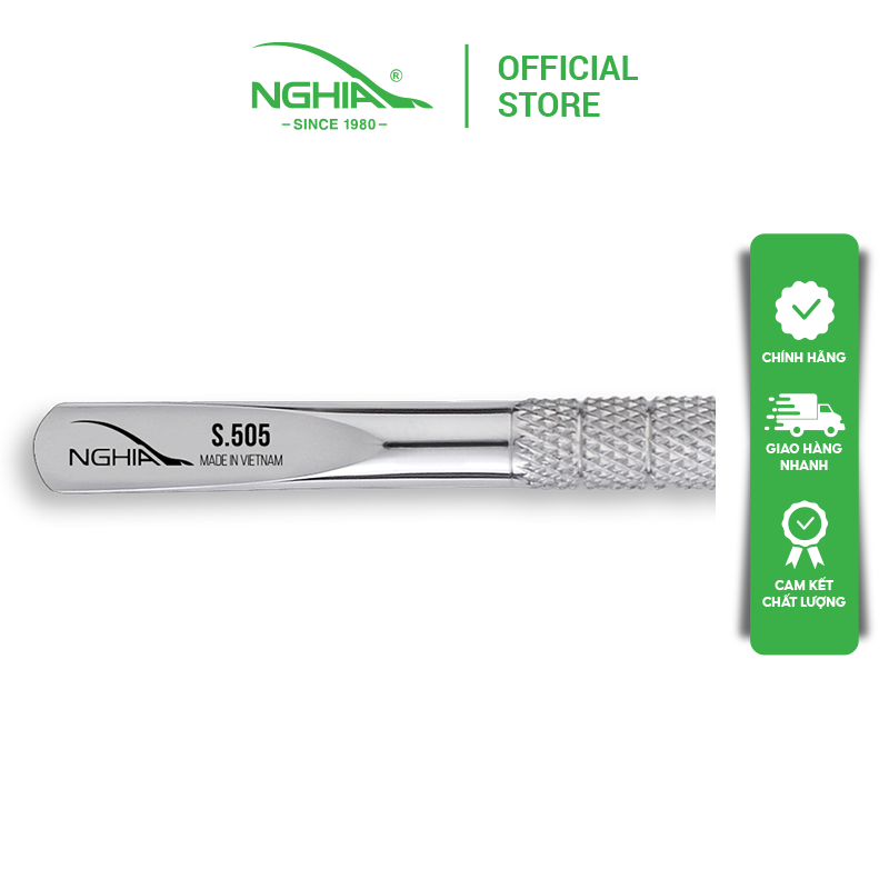 Rất nhiều khách hàng đã hỏi Kềm Nghĩa về công dụng của sủi da. Sủi da là dụng cụ hỗ trợ chăm sóc móng có 1 đầu sủi dùng để đẩy tế bào chết trên móng, làm bong tróc các vùng da thừa quanh móng để kềm cắt da có thể cắt dễ dàng hơn. Bên cạnh đó sủi da còn được thiết kế thêm 1 đầu lấy khóe để lấy đi đất, cát, bụi bẩn bám bên trong kẽ móng. Sủi da thường được thợ chăm sóc móng chuyên nghiệp lựa chọn sử dụng vì tính tiện dụng và hỗ trợ cao cho việc làm móng. Tuy nhiên, hiện nay khách hàng cá nhân cũng đã biết nhiều đến công dụng của sủi da và mua về sử dụng tại nhà. Sản phẩm S-505 là dòng sủi da được ưa chuộng nhất vì thiết kế hai đầu dễ sử dụng. Đặc biệt, chất liệu chính của tất cả các dòng sủi da Kềm Nghĩa đều là thép không gỉ nên không bị gỉ sét khi chạm nước và hấp tiệt trùng. Chế độ bảo hành Nếu sản phẩm bị lỗi kỹ thuật, quý khách có thể đổi lại tại bất kỳ đại lý nào của Kềm Nghĩa/ Showroom/ Công ty. Lưu ý sử dụng Công dụng sản phẩm: Dùng để sủi da (đẩy da), lấy đất, bụi bẩn ở khóe móng. Cách bảo quản sản phẩm
