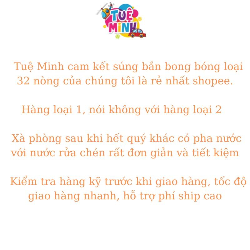 - B4: Nhúng nòng vào nước thổi bong bóng và bóp cò thôi Theo mong muốn của đa số khách sau khi mua súng bong bóng là xà bông hết thì như thế nào. Khách cũng có thể tự pha nước xà phòng cho bé chơi tuy nhiên không phải loại xà bông nào cũng tạo được bong bóng như mong muốn. Pha bằng các loại nước rửa bát hay xà phòng thông thường sẽ không được nhiều bóng, mầu sắc bóng không được đẹp, bóng bóng nặng nên không bay được cao và bóng cũng không được dai nên nhanh chóng bị nổ không tồn tại được lâu. Vậy chẳng lẽ chỉ sử dụng được 1 lần? Túi xà bông tự pha dùng cho đồ chơi thổi bong bóng là giải pháp tiết kiệm nhất. Khách chỉ cần đổ nước xà bông trong túi vào bình sử dụng cùng súng bong bóng, thêm nước cho đầy bình, vậy là đã có ️ Cam kết của shop khi quý khách mua sản phẩm súng bắn bong bóng: Đổi trả sản phẩm lỗi và hỏng trong vòng 7 ngày Tư vấn miễn phí khi khách có bất kì thắc mắc nào Nguồn gốc xuất xứ: Trung Quốc