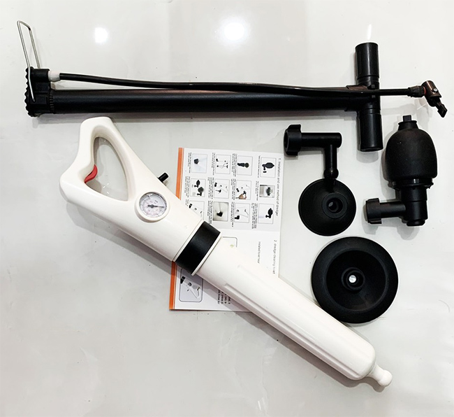 Dụng cụ thông tắc bồn cầu, ống nước bằng khí nén là biện pháp hữu hiệu nhất hiện nay cho việc thông tắc bồn cầu, chậu rửa mặt, bồn rửa tay,cống nước sàn khi bị
