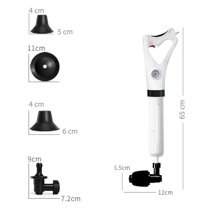 Súng Thông Tắc Bồn Cầu Sản Phẩm Cao Cấp Sử Dụng An Toàn Hiệu Quả - Bộ sản phẩm gồm: Súng nén áp lực, 4 đầu chụp, đầu nối. - Sản phẩm tạo lực đẩy