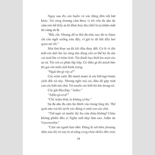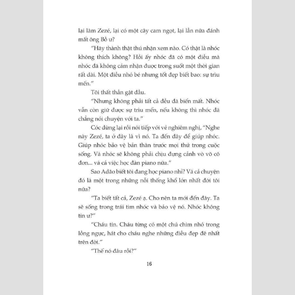 Nhưng, may thay, Zezé đã tìm được những người bạn mới – cả ở đời thực lẫn trong tưởng tượng – luôn thấu hiểu và sát cánh bên cậu, cùng cậu đi qua hết thày những niềm vui cùng nỗi buồn, những khổ sở, thất vọng, những phiêu lưu mạo hiểm, giúp cậu đối thoại với cuộc sống muôn màu muôn vẻ, với nội tâm đầy mâu thuẫn và đồng thời với cả nỗi buồn thương sâu thẳm trong tâm hồn.