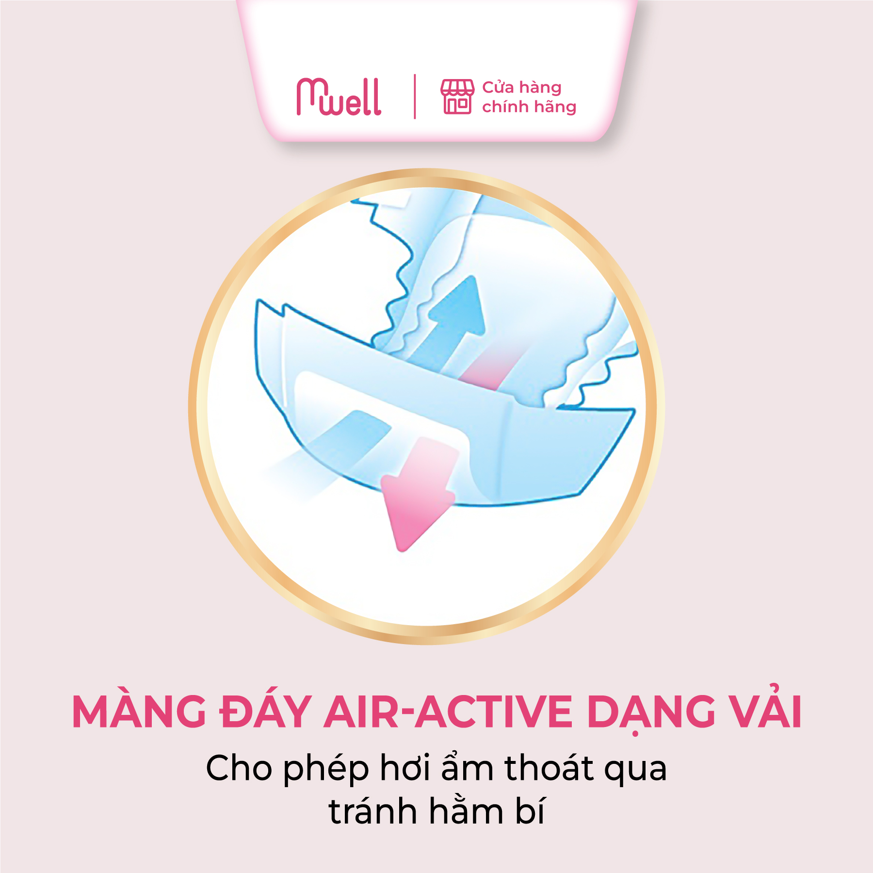 BAO BÌ SẢN PHẨM CÓ THỂ THAY ĐỔI THEO TỪNG ĐỢT NHẬP HÀNG Màng đáy thoáng khí dạng vải 100% Air-active Rãnh thấm siêu tốc giữ bề mặt tã khô thoáng Vách chống trào kép