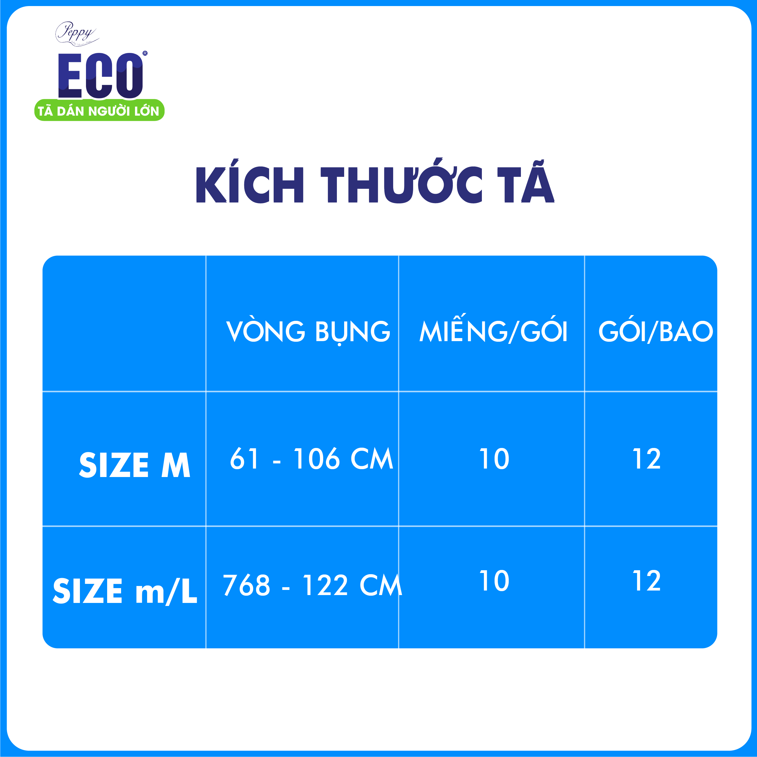 ✨Tã Dán Người Lớn Peppy Eco Siêu Mềm Mại, Siêu Khô Thoáng, Kháng khuẩn Size M/L (10 Miếng