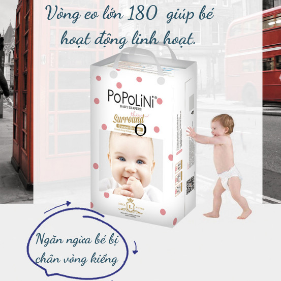 - Tã/ Bỉm POPOLINI với phần lưng thun co giãn 360 độ linh hoạt và mềm mại giúp hoạt động của bé trở nên dễ dàng, năng động.