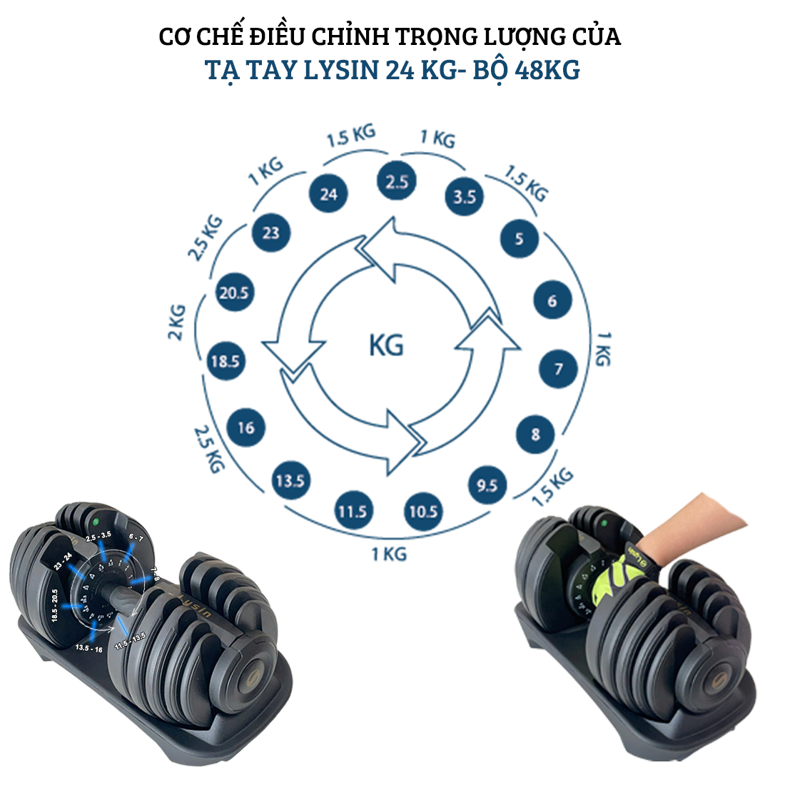 ✨Tạ Đơn Điều Chỉnh Lysin Pumpking 24kg – Tạ Gym Đổi Trọng Lượng Nhanh Một Tay