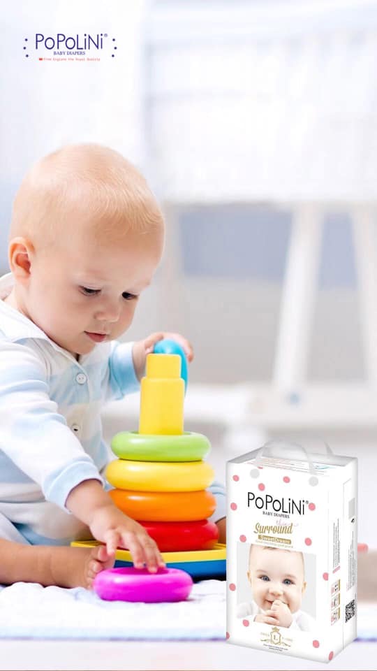 - Tã/ Bỉm POPOLINI với phần lưng thun co giãn 360 độ linh hoạt và mềm mại giúp hoạt động của bé trở nên dễ dàng, năng động.