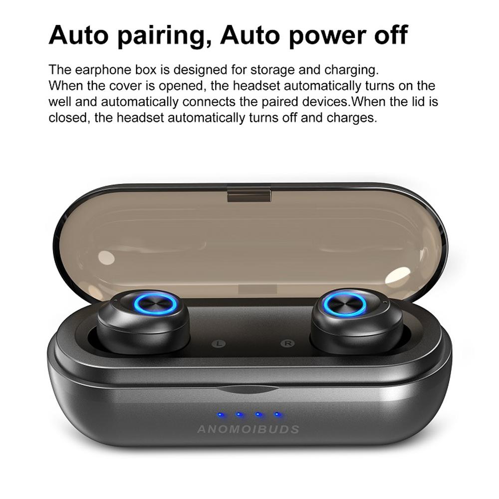ANOMOIBUDS IP010-X True Wireless Bluetooth Headphones adopts BT 5.0 technology, bringing high-speed data transfer speed, stable performance and low power consumption. With TWS technology, left and right ear channel are separated. You can use the headset solely, or used them in pairs. Auto fast pairing between left and right earbuds once opening the cover of the charging case. Easy and quick to pair with BT-enabled audio devices. Equipped with a 1000mAh charging box to charge the earbuds for 9-10 times, provides total 50 hours of working time. Built-in dual Microphone delivers clearer and more real talking sound. Its mini size and 4.3g weight of each earphone fit well to your ear canal, stable and comfortable to wear when doing sports. ANOMOIBUDS IP010-X will brings you perfect user experience.