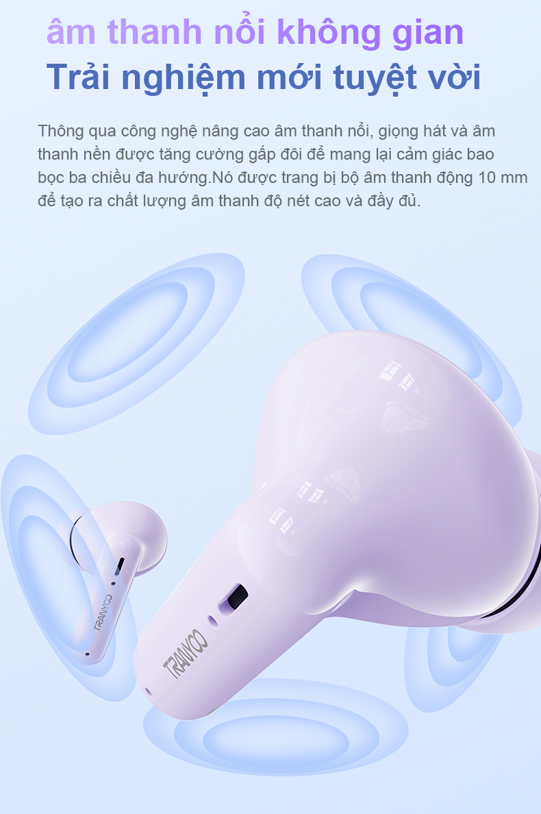 Tai nghe Bluetooth 5.3 TRANYOO T-M26 Khử tiếng ồn thông minh chức năng nghe gọi chơi game pin trâu