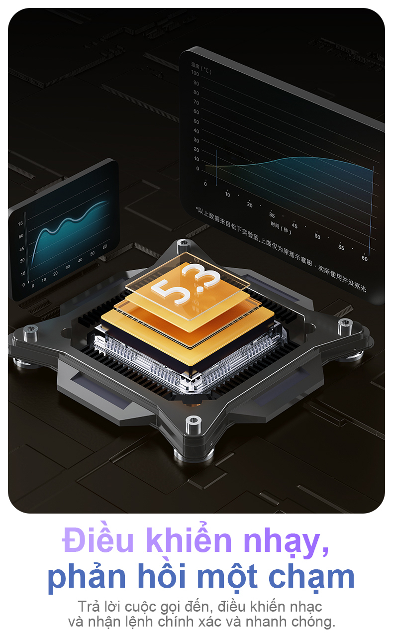 - Chip Bluetooth 5.3, tốc độ truyền nhanh hơn, khoảng cách truyền dài hơn, ổn định và chống nhiễu.