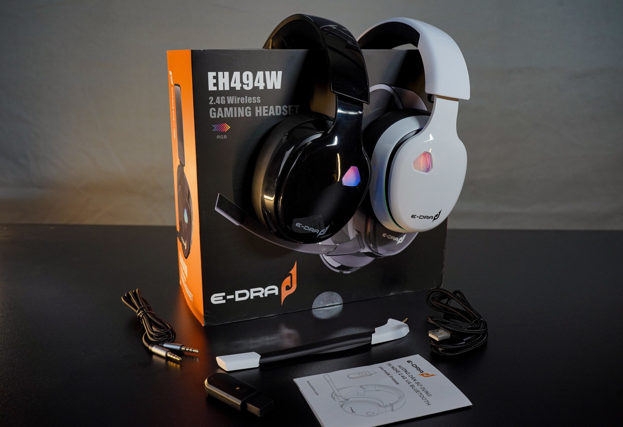 Tai nghe E-DRA EH494w (Không dây/ mic rời/ Đen - Trắng) - Tên sản phẩm: Tai nghe chơi game E-DRA EH494w - Kết nối: không dây 2.4Ghz, Bluetooth 5.0, 3.5mm - Sạc pin: qua cổng
