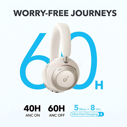 - Thời gian nghe nhạc: 40h (bật ANC)/60h (tắt ANC)