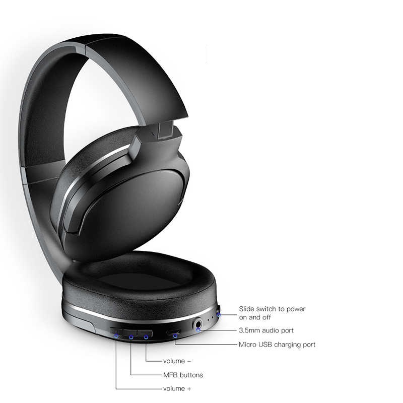 1. Loa: 40mm. 2. Đặc điểm kỹ thuật BT: BT V5.0 JL6925. 3. Các thỏa thuận hỗ trợ: A2DP, AVRCP, HSP, HFP. 4. Thời gian sạc: khoảng 2 giờ. Thời gian chờ: hơn 200 giờ.
