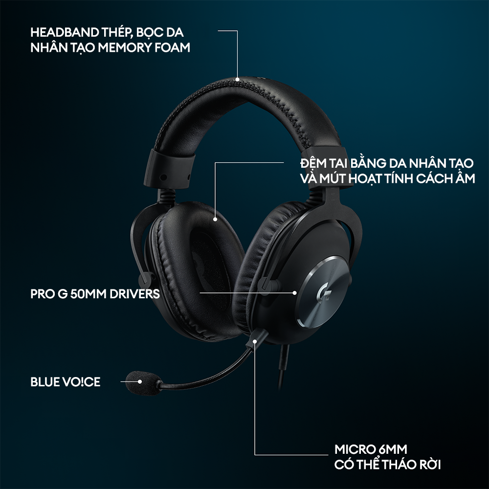 ÂM THANH ĐẮM CHÌM Nghe tất cả với các màng loa PRO-G của riêng bạn được thiết kế để cho âm thanh chính xác và toàn dải. Đắm chìm vào trò chơi hơn bao giờ