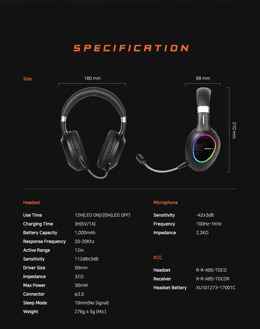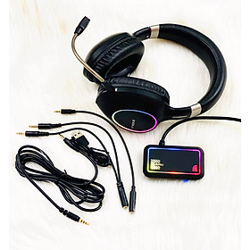 - Tai nghe kết nối không dây thông qua bộ phát truyền tín hiệu kết nối USB (dây dài 1.2m) , có LED RGB hiệu ứng rất nhỏ gọn.