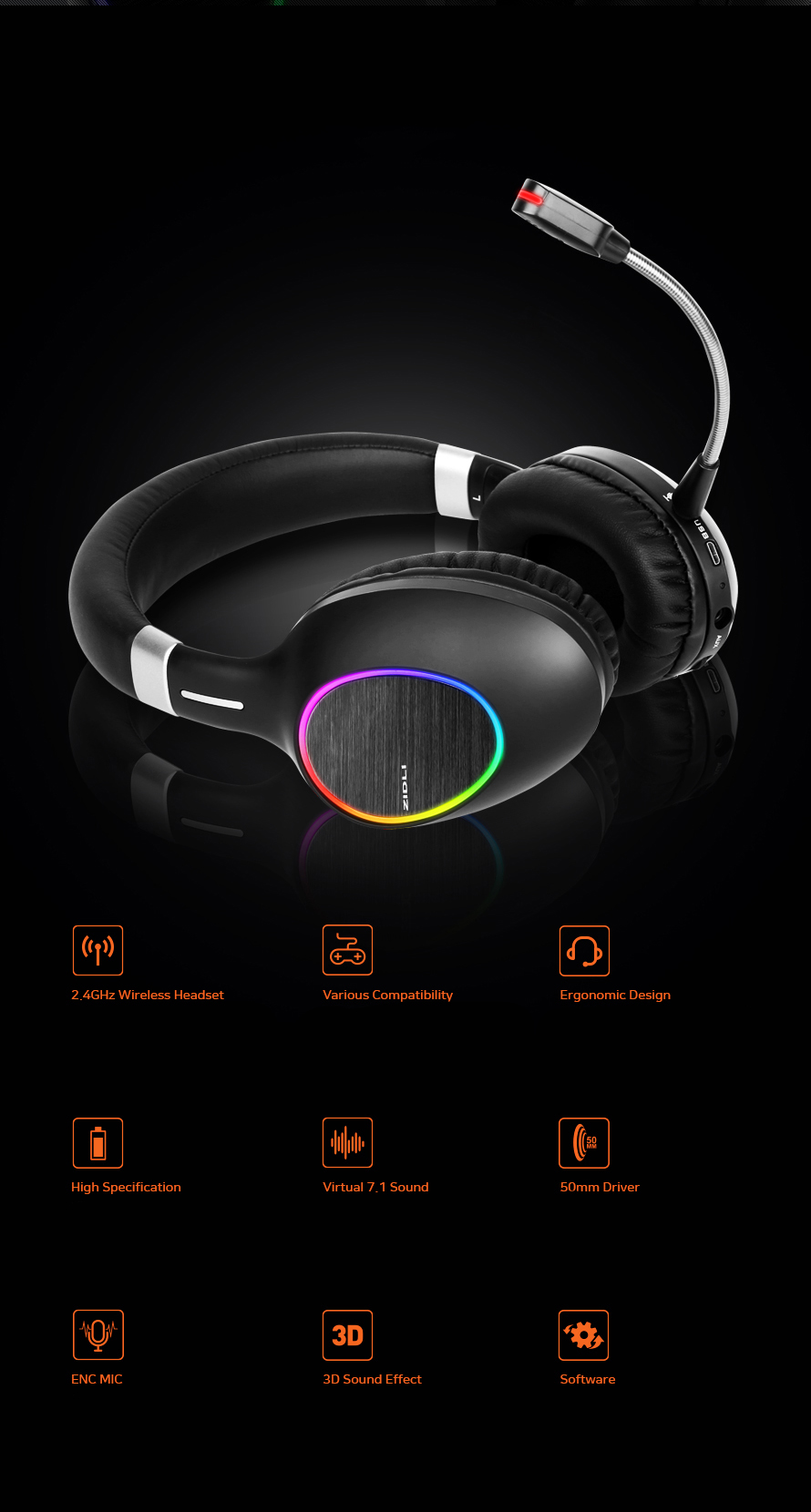 ✨Tai nghe gaming không dây ZIDLI AH1 2.4Ghz - Hàng chính hãng