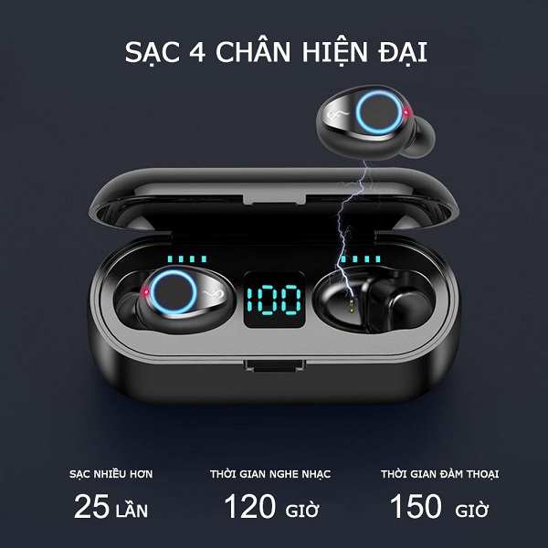 Tai nghe không dây blueetooth LANITH cao cấp 5.0 TWS F9 – Tai nghe Bluetooth kiểu dáng hiện đại, thời thượng – TA0002 Tích hợp Bluetooth 5.0 cao cấp Khoảng cách truyền 10m Âm thanh 3D cao cấp Pin Dock sạc: 2000mAh Thời gian sạc: 5-6 giờ Thời gian sử dụng: 3-4 giờ Phù hợp với nhiều hệ điều hành như: Android, IOS, Windows, Laptop